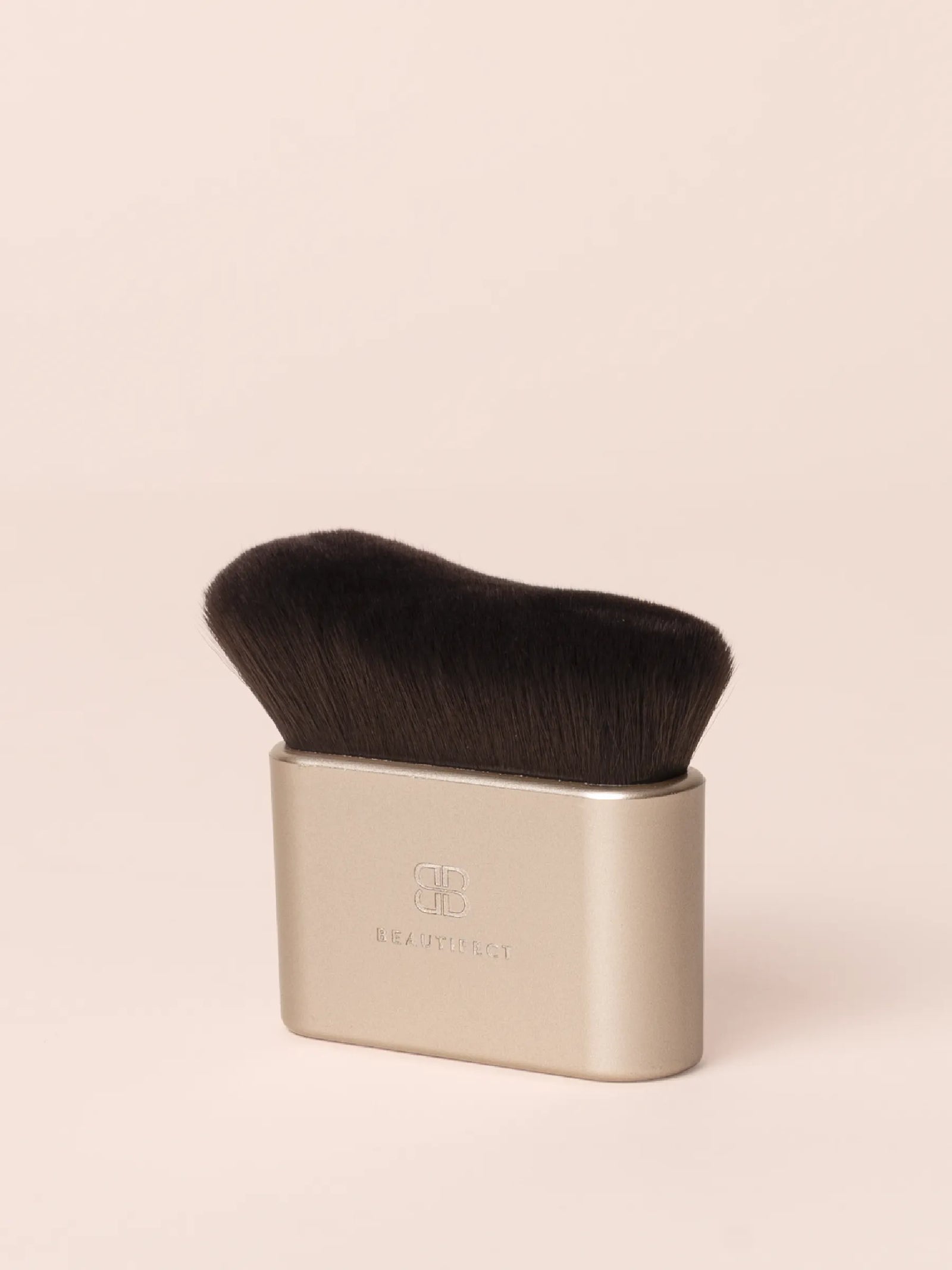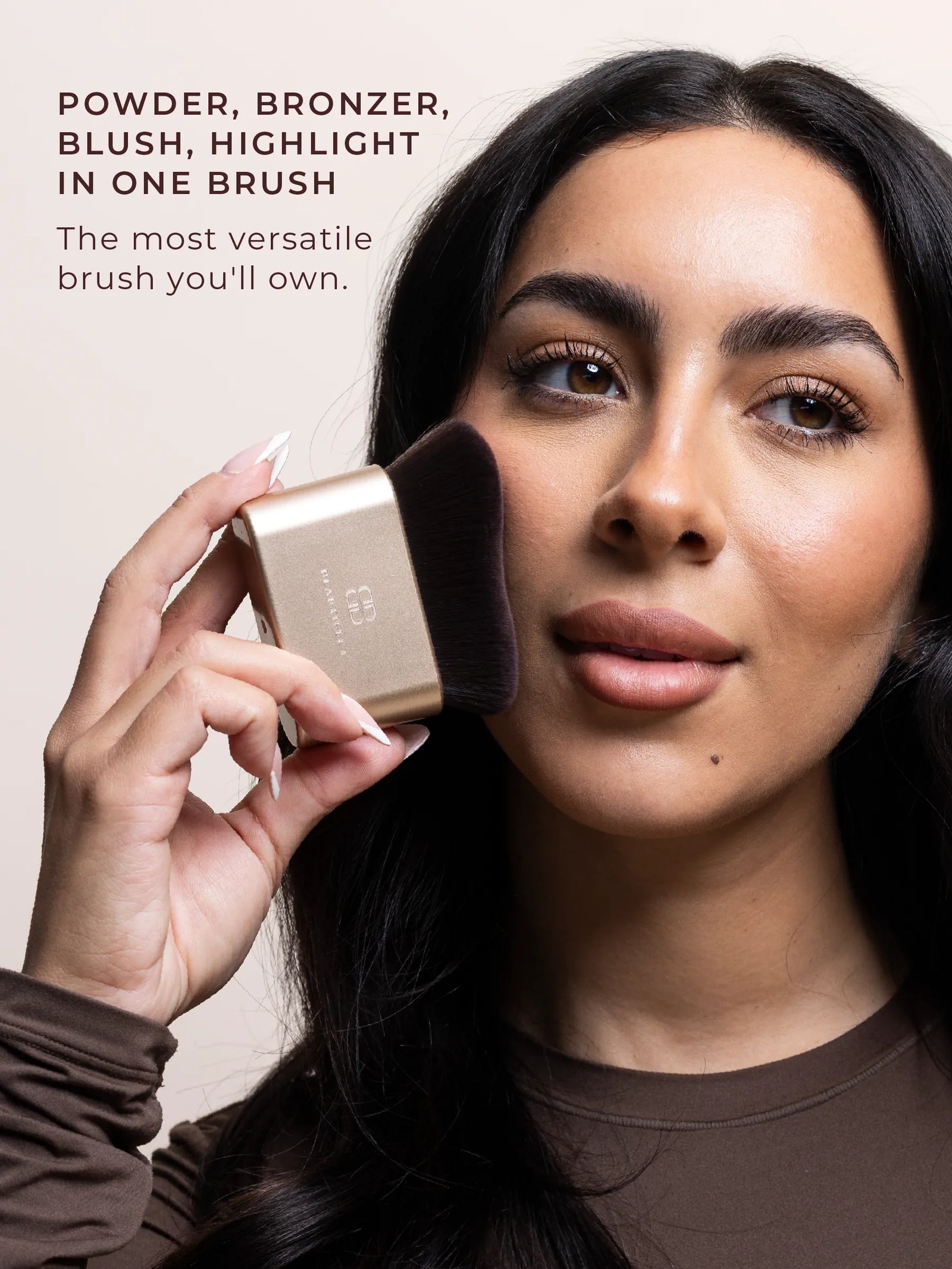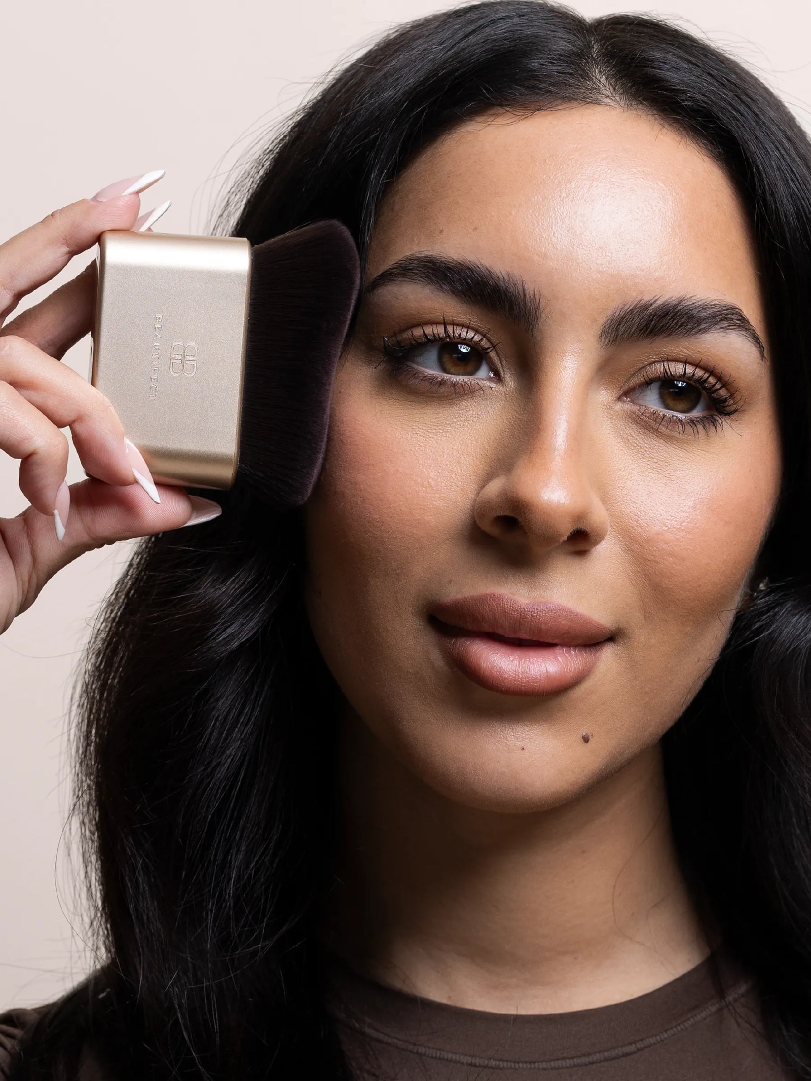 A luxuriously dense kabuki brush with ultra-soft vegan fibres for seamless powder, bronzer, blush, and highlight application. The single multi-use brush for an airbrushed complexion finish, suitable for beginners and professionals alike.