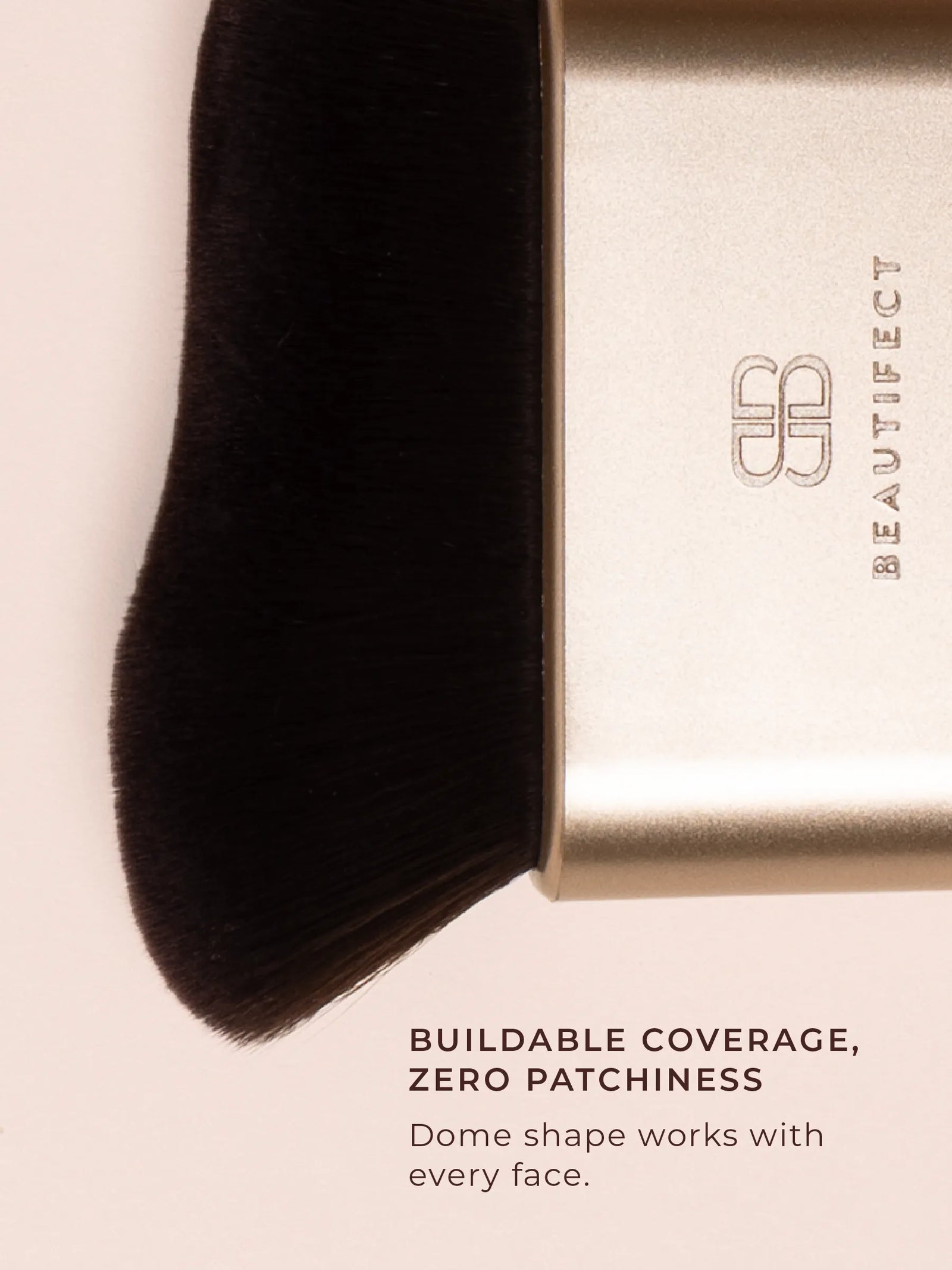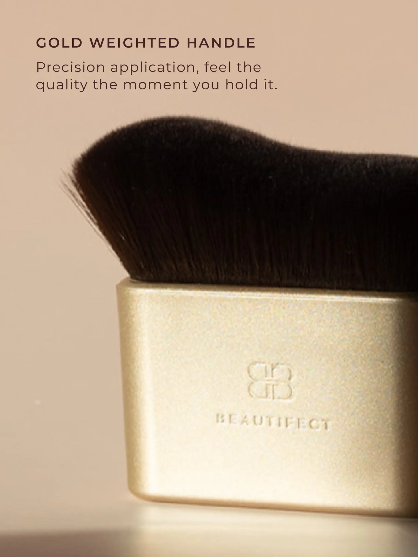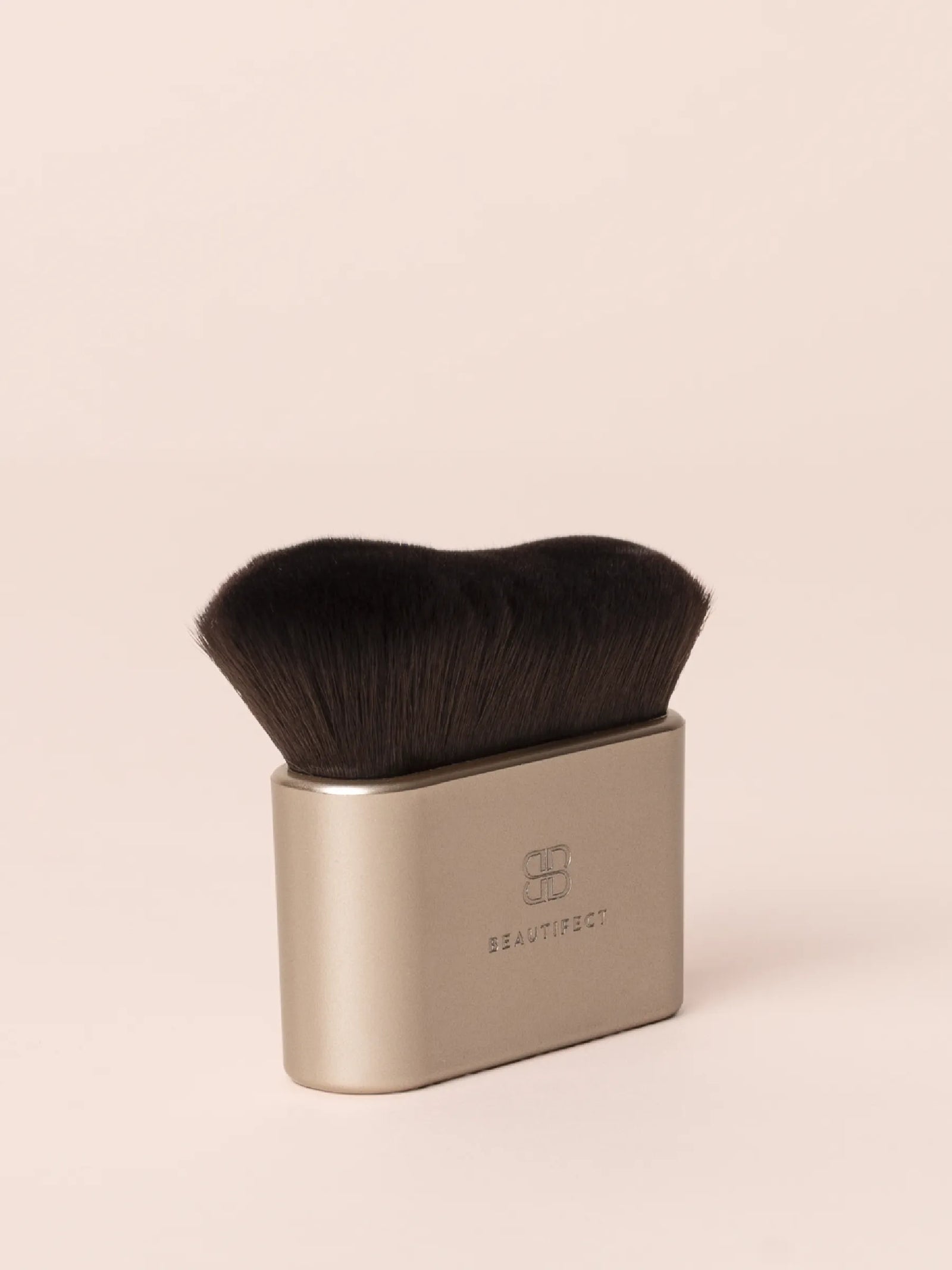 A luxuriously dense kabuki brush with ultra-soft vegan fibres for seamless powder, bronzer, blush, and highlight application. The single multi-use brush for an airbrushed complexion finish, suitable for beginners and professionals alike.
