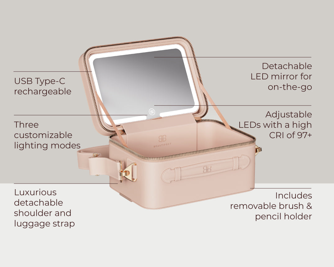 Meet the Beautifect GO mini, the ultimate travel companion for beauty lovers who demand style, function, and flawless lighting wherever they go. Designed with Beautifect's award-winning technology, this compact beauty case boasts advanced lighting and thoughtful, patented features for a truly transformative on-the-GO experience.