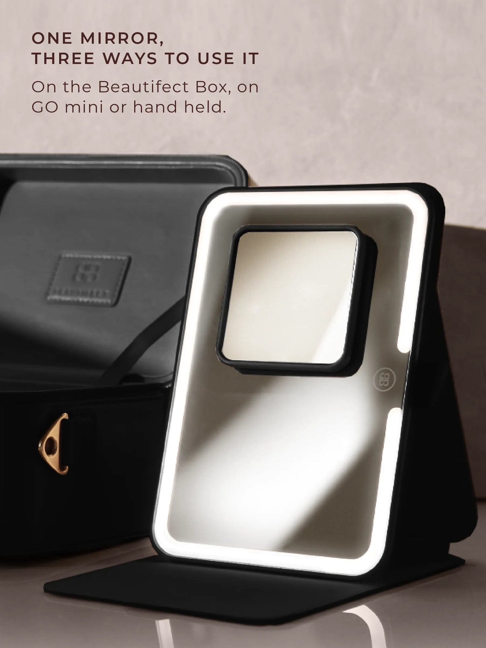 A premium 5x magnification mirror for professional-level precision, compatible with the Beautifect Box and GO mini. Distortion-free clarity for brows, liner, lashes, and every detail that matters.